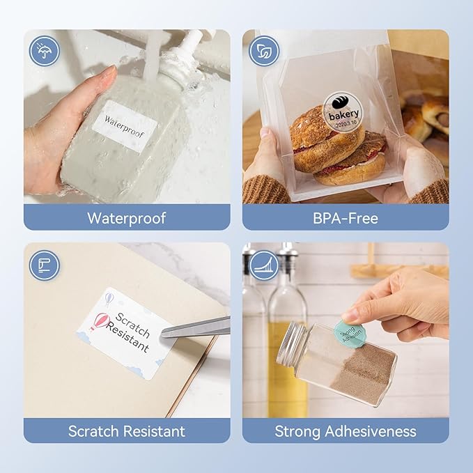 - High Quality--Direct thermal printing technology clear printing. No ink or toner is required waterproof, oil-proof, tearproof, leaves no trace, and BPA-free. Stronger adhesiveness, removed easily, no residue left, you could use it at ease.