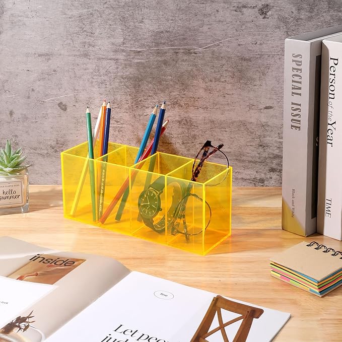 - 4 Compartments: Featuring 4 separate compartments, this acrylic pen holder for desk allows you to sort out different type of pens, pencils, markers into different compartments, making it easy to store your office essentials, keep your stationary supplies organized and easy to find.