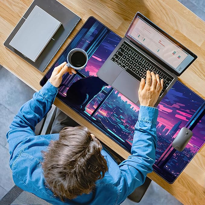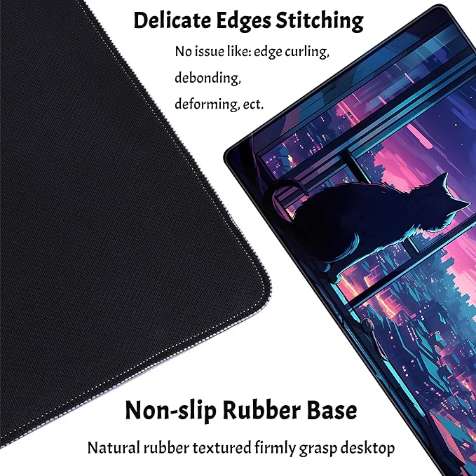 - 【Extended XX-Large Size Design】Cute japanese tokyo street gaming desk pad 31.5×15.75×0.12 inch(800×400x3mm)size is large enough to accommodate your laptop, keyboard, mouse and other desk items.