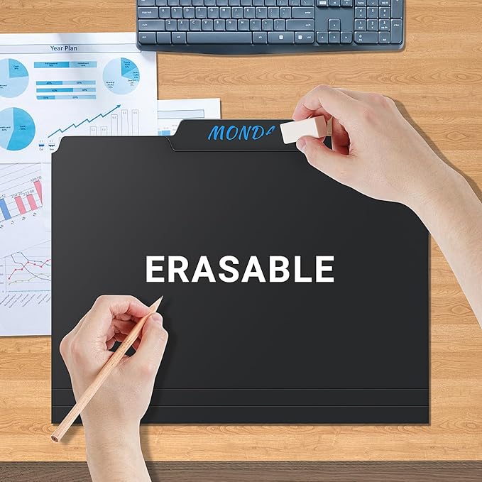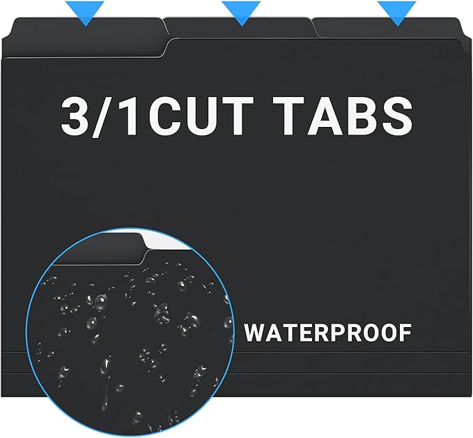 - Black 3-Tab File Folder: Open folder measures (11.6"W x 9.0"H), 0.5"H tabs. 1/3 Cut Tabs are writable and erasable using pencil or whiteboard marker (do not use permanent marker). Labels included.