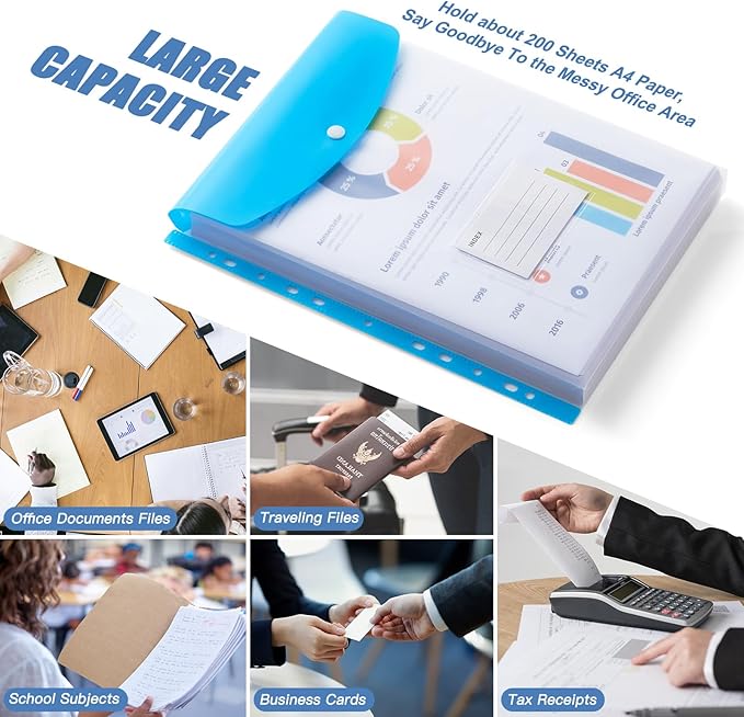 - 【Expandable Binder Folders】The binder pocket size is 12.6'' x 9.25''(32cmx23.5cm), the 3D design can be expandable to 0.8'', easily holds more than 200 A4 pages/letter-size paper. Storing and sorting your documents, stationery, charts, invoices, receipts and bills, letters, photos and more.