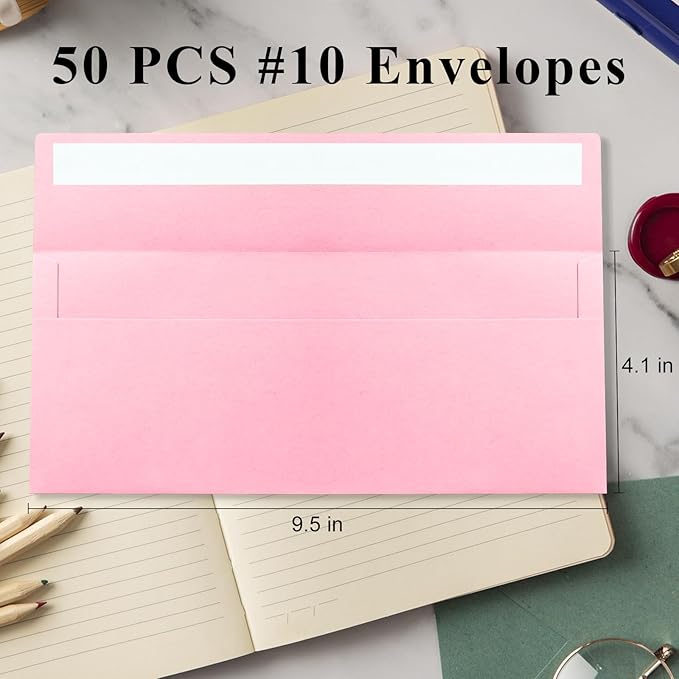 - 【Standard #10 Business Envelopes】These #10 business envelopes kit contains 50 pieces 4 1/8 x 9 1/2 Inches pink envelopes, perfect for office or home purposes