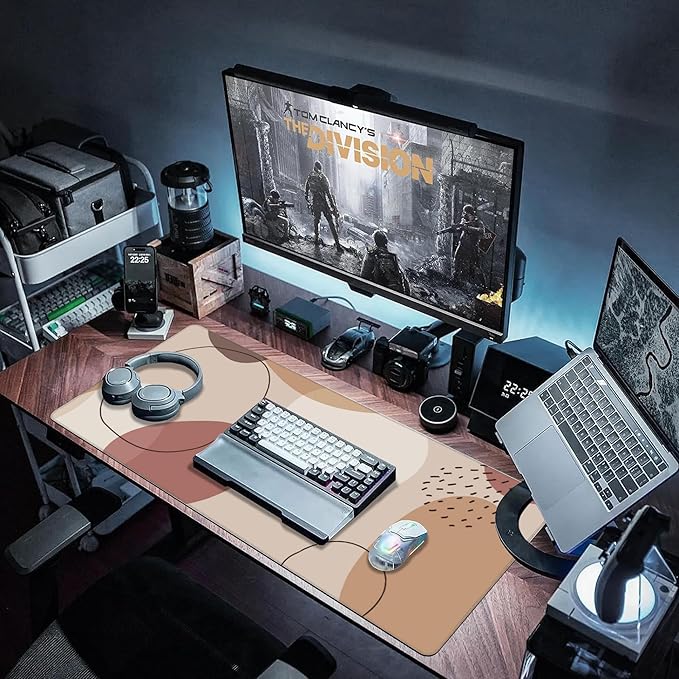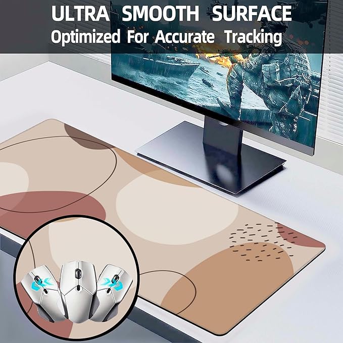Desk Pad, Boho Abstract Geometric Patterns Extended Large Gaming Mouse Pad XXL, Large Desk Mat for Desktop with Non-Slip Rubber Base Stitched Edges for Home Office 5.4"X15.7"