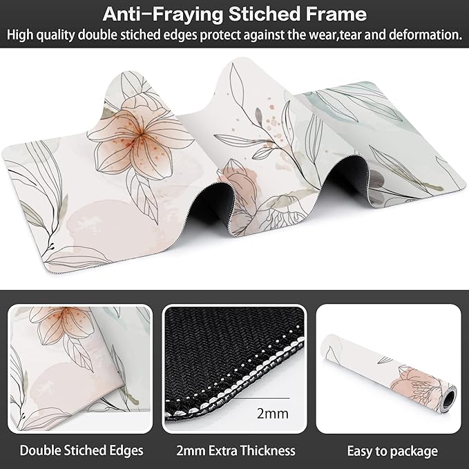 Desk Mat, Abstract Boho Flowers Extended Large Gaming Mouse Pad for Desk XXL, Non-Slip Rubber Base Stitched Edges Long Computer Keyboard Desk Pad Mouse Mat for Home Office Gaming 35.4"X15.7"