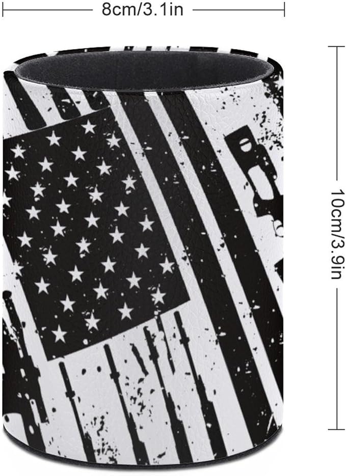 American Flag Pen Holder Pencil Organizer Cute Pencil Cup Desk Decor Makeup Brush Holder PU Multifunctional Office Suppliesfor Home Classroom School
