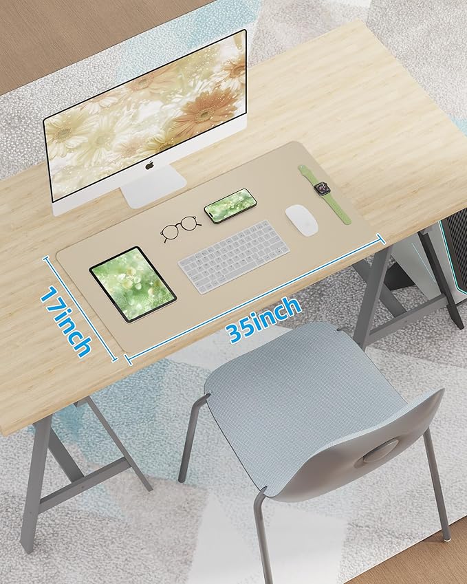 AFIING Leather Desk Pad Protector, Mouse Pad, Office Desk Mat, Non-Slip PU Leather Desk Blotter, Large Desk Mat, Waterproof Keyboard Mat for Office/Home/Decor (Beige, 48" x 17")