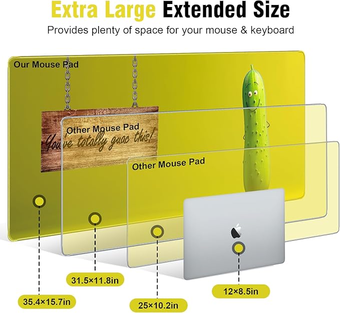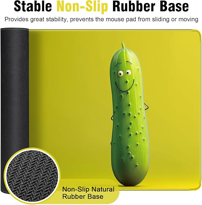 - 【Funny Design Cute Mouse Pad】This full desk mouse pad features a cute cucumber pattern and funny 'you've totally guac this' text, which will add fun to your daily office and gaming. This cute mouse pad will also bring you a pleasant mood when you see this mouse pad during your usual boring work. Use this mouse pad in the office and start a pleasant work day!