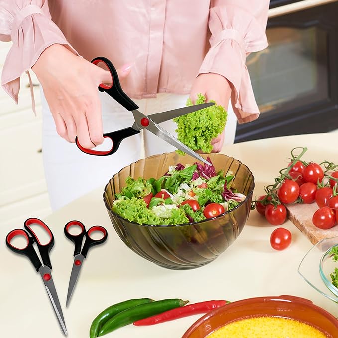 - Convenient Pack of 3: Unlike similar products on the market, these metal scissors come in a cost affordable and convenient packs of 3, including 3 different scissor sizes to cover all your needs: 8", 7 1/2" and 5" Great as kitchen scissors, gifts, or office supplies