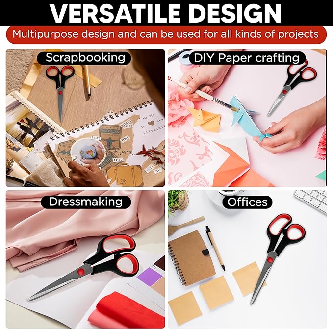 - Versatile Design: Our sharp scissors have a multipurpose design and can be used for all kinds of projects, from arts and crafts, sewing supplies, DIY paper crafting, office desk, dressmaking, tailoring and alterations, scrapbooking, kitchen scissors, kids scissors and much more!