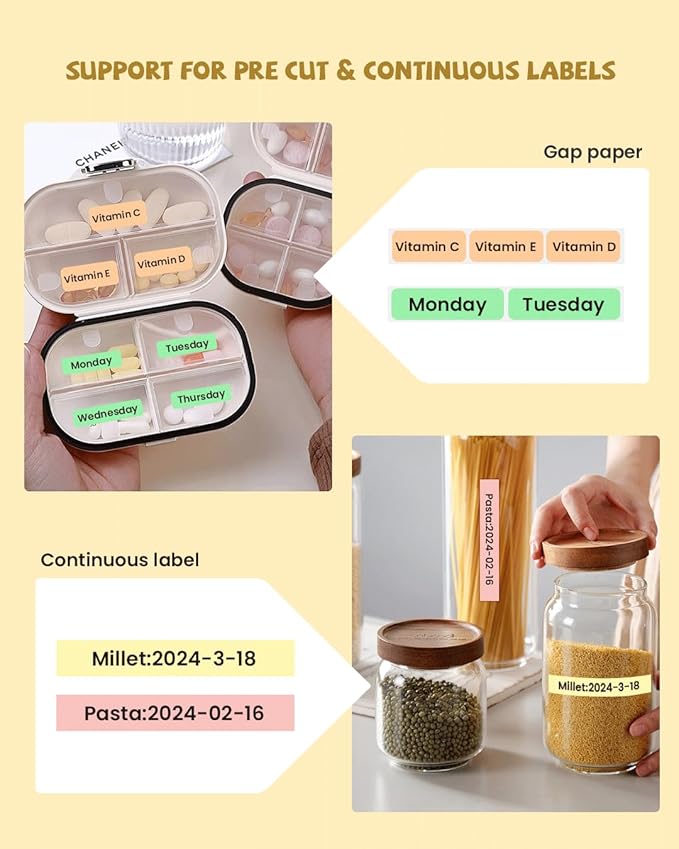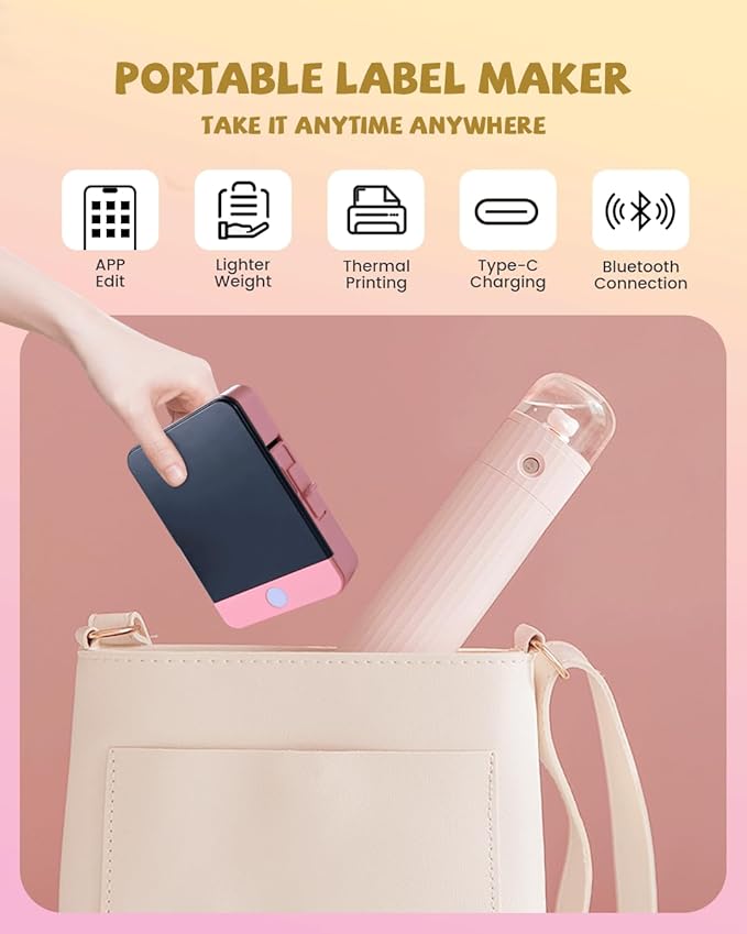 - Portable Machine-Mini Label Maker: The portable label maker is smaller and lighter, It is convenient to take it in your bag and bring it to your home and office. Our Bluetooth label maker only needs to be loaded with labels, and connected to Bluetooth, Then you can print your labels anytime, anywhere.