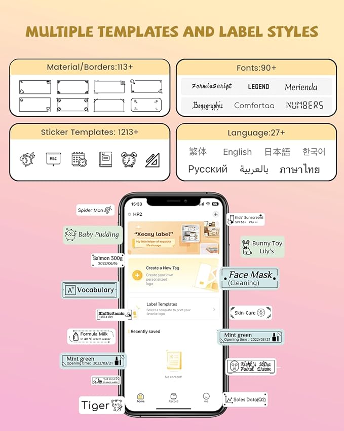 - Printing clearly: Our clear label maker uses thermal technology, No ink needed, and no toner, So you can have clean and high-definition labels without worrying about fonts sticking. The "xeasylabel" application contain all the above sizes you can choose to print, without any adjustment. Meet the labeling needs of different customers!