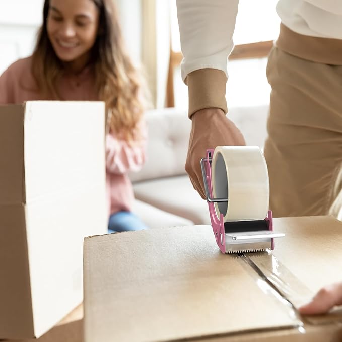 Rapid-Replace Packing Tape Dispenser Gun with Tape and Extra Blade, 2IN(50mm) Lightweight Ergonomic Industrial Handheld Heavy Duty Tape Cutter for Carton, Packaging and Box Sealing, Pink