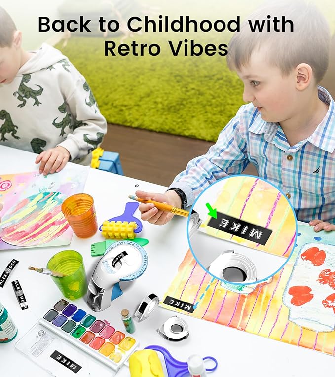 - Vintage Embossing Label Maker: The EazeID embossed label maker with tape feat ures a charming retro design that people adore. Its ergonomic hand-grip design ensures effortless squeezing, saving you time and effort. Remember, the more pressure you apply, the clearer the print will be