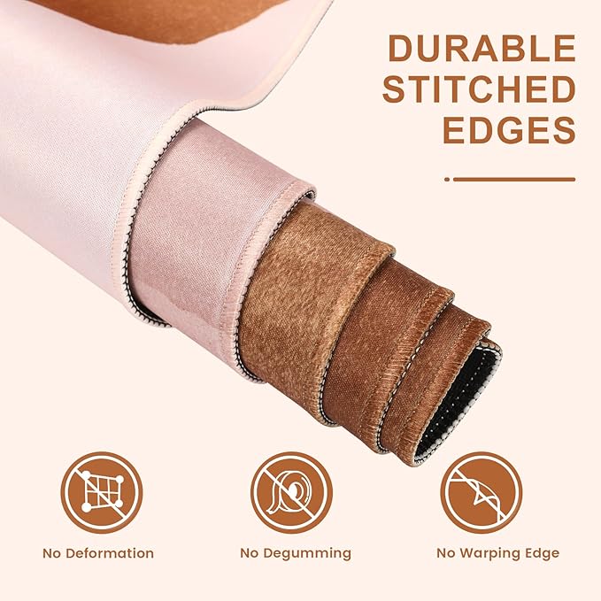 - Professional Elaborate Stitched Edges: The extend boho desk mat uses exquisite edge stitching. The professional stitching process can prevent the edges of the desk pad from spreading, effectively improving the wear resistance of the deskmats and extending their service life.