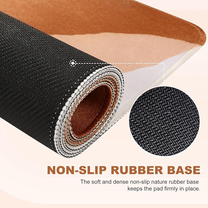 - Water-Resistant Top and non-slip Rubber Bottom: Large computer mat adopt water-Resistant material surface prevents damage from water, coffee, juice and other drinks. The back of the extended desktop mat is rubberized to keep it stay and stick securely in place when using it.