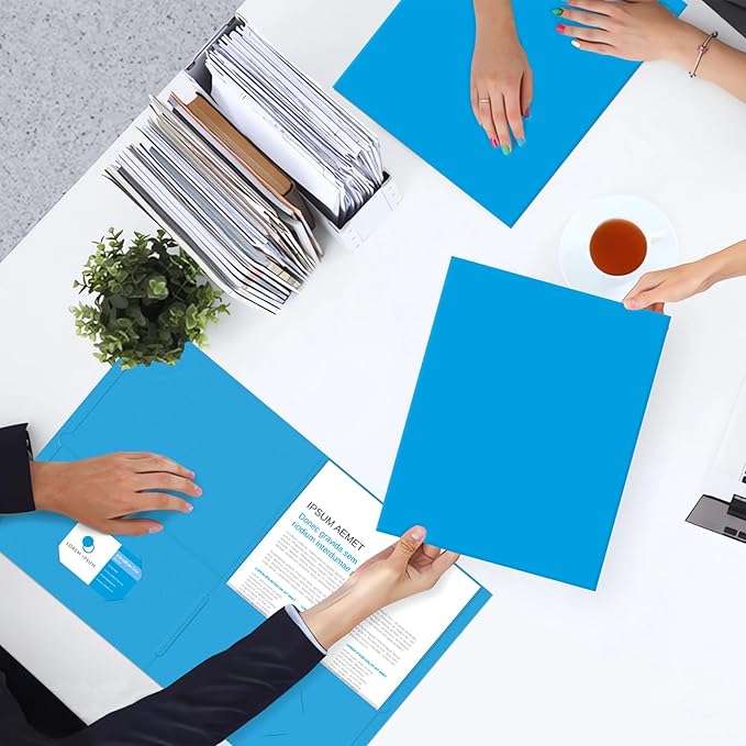Two Pocket Folders, PANDRI 50 Pack 2 Pocket Folders, Letter Size Paper File Folder for School Office Home Business, LightBlue