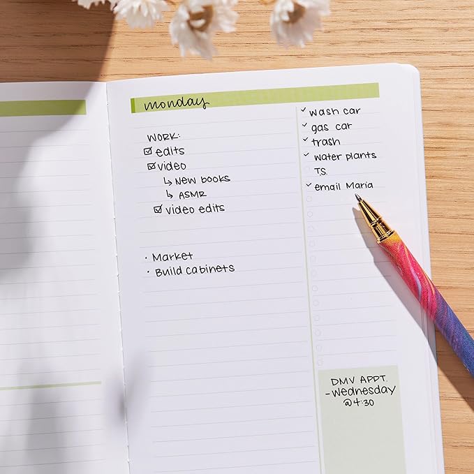 - ENHANCE YOUR PRODUCTIVITY: Stay on top of goals, tasks, and priorities with a compact journal designed to simplify your daily routine. Perfect for list-making, note-taking, and to-do lists, this portable notebook helps you track progress and organize your schedule anywhere.