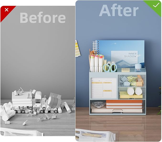 Marbrasse Desk Organizer with 3 Drawer, Multi-Functional Pencil Pen Holder for Desk, Desktop Organizer Storage for Office Home Art Supplies (Blue)