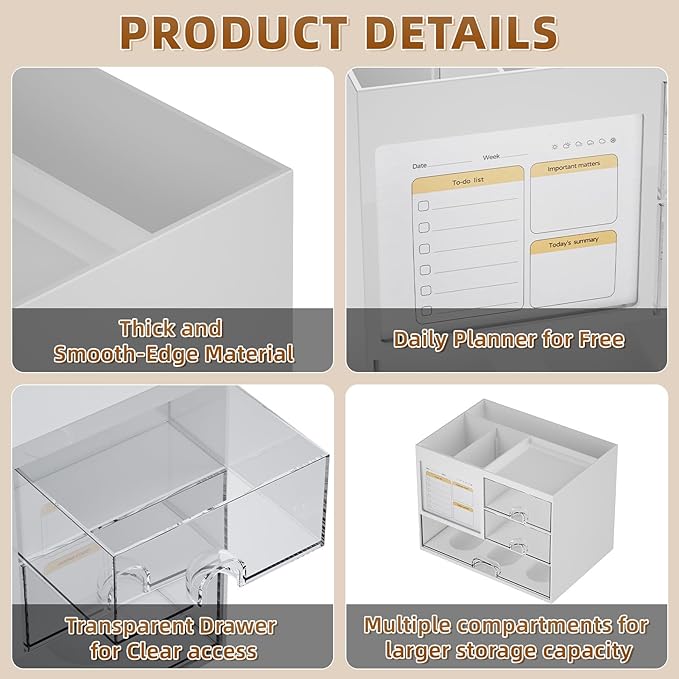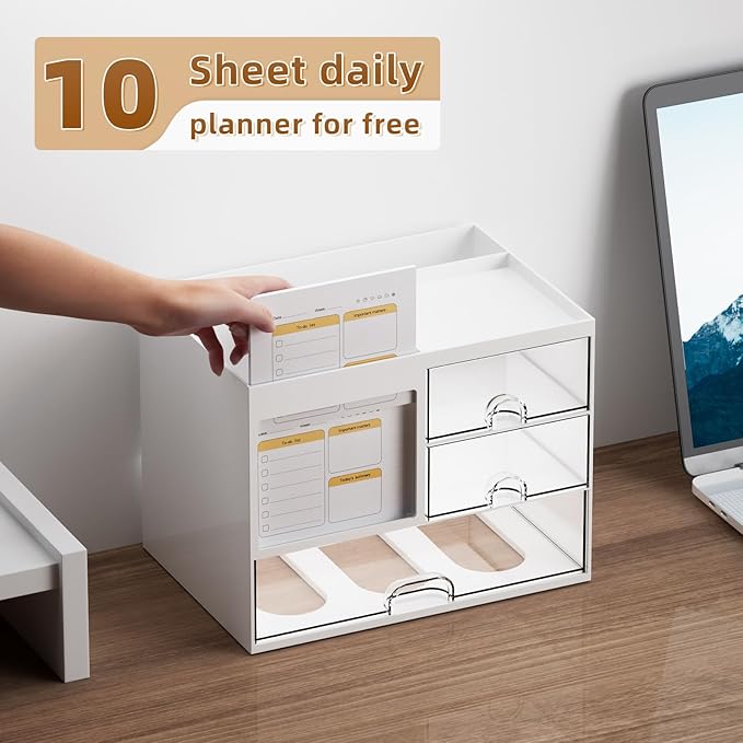 - 【Daily Memo for Free】This humanized desktop storage box is not only perfect for storing your desktop stationery but also great for doing your daily schedule. In particular, the daily planner is placed in the most visible place on the desktop, which can serve as a more prominent reminder and help you work effectively.