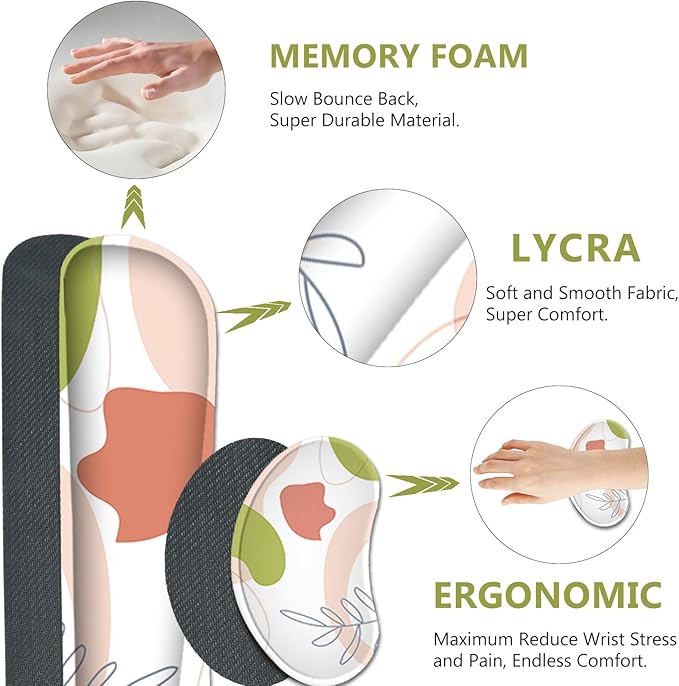 - 【ERGONOMIC DESIGN】: Keyboard wrist rest & mouse wrist support designed with comfortable memory foam and breathable material fabric, perfectly support your wrist while typing or sliding, minimizing relieve pressure and pain of your wrist, and maintaining wrist comfort and normal blood circulation.