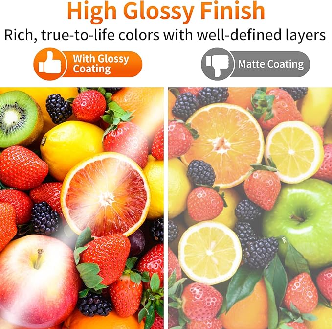 - Glossy Finish: Our glossy photo paper features its a reflective finish, that resists fingerprints and almost eliminates glare, makes every picture more professional and attractive look like a work of art
