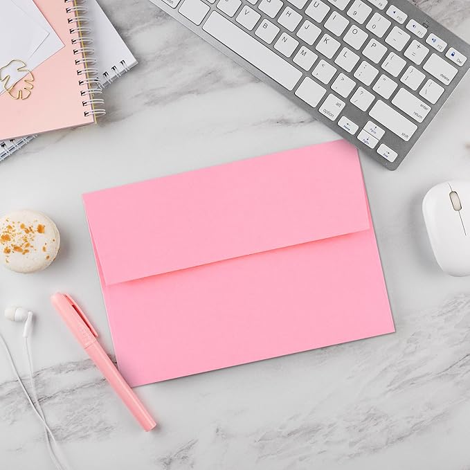 50 Pack 5x7 Envelopes for Invitations,5.25x7.25 inches,A7 Envelope Pink Self Seal,Printable Envelopes for Wedding,Invitation,Baby Shower,5x7 Cards