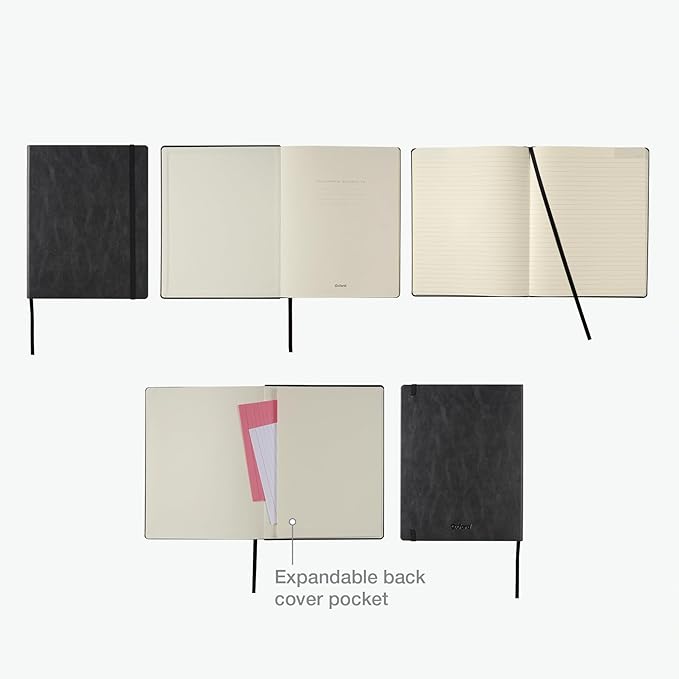 - Keep receipts, notes and extra papers tucked away in an expandable inside pocket; classic notebooks are made of high-quality paper to avoid bleedthrough of ink; each page has a field for the date