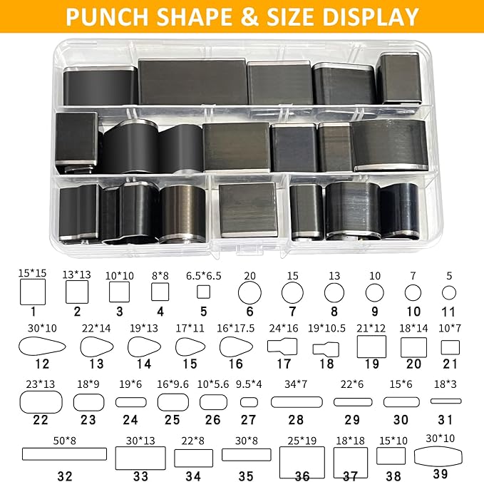 - 【Versatile Leatherworking Tools】With 40 pieces in this set and a wide range of shape styles, our multi-style shape leather hole punch tool is perfect for all kinds of handmade DIY leather crafts. Whether you're making belts, watchbands, furniture, or anything in between, our leather hole punch set has got you covered.