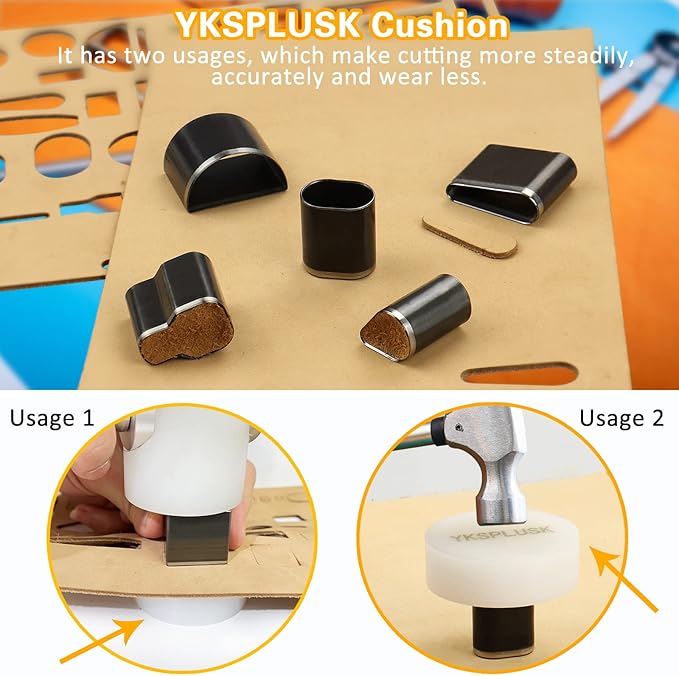 - 【New Design-YKSPLUSK Cushion】Our leather hole punch tool also features a unique cushion design, which helps you cut more steadily and accurately while reducing wear and tear on the tool. This cushion ensures your leather projects come out perfectly every time.
