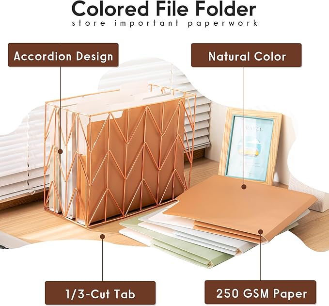 - Extra Capacity - Accordion design ensure the paper is not easily moved in the file folder. The 1” expandable bottom of cute file folder can place more paper, more compact and organized. Suitable for file desk organizer or organizer box