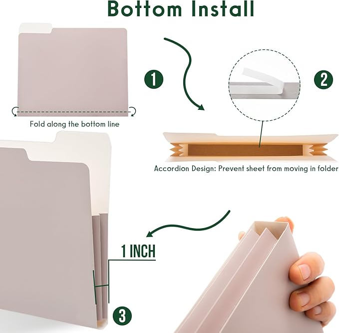 - Extra Capacity - Accordion design ensure the paper is not easily moved in the file folder. The 1” expandable bottom of cute file folder can place more paper, more compact and organized. Suitable for file desk organizer or organizer box