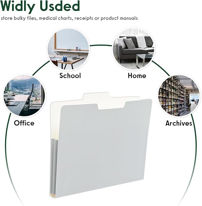- Neatly File - 1/3 cut Build-in tabs are design for clear identification, can take well visible for quick positioning and easy file sorting. The filing folders can store bulky files, medical charts, receipts or product manuals