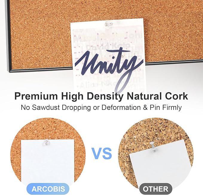 ARCOBIS Cork Board White Board Combo, 24 x 18 Inch Bulletin Board, Magnetic Dry Erase Board & Corkboard for Wall, Vision Board for Home, Office, School, Black Frame