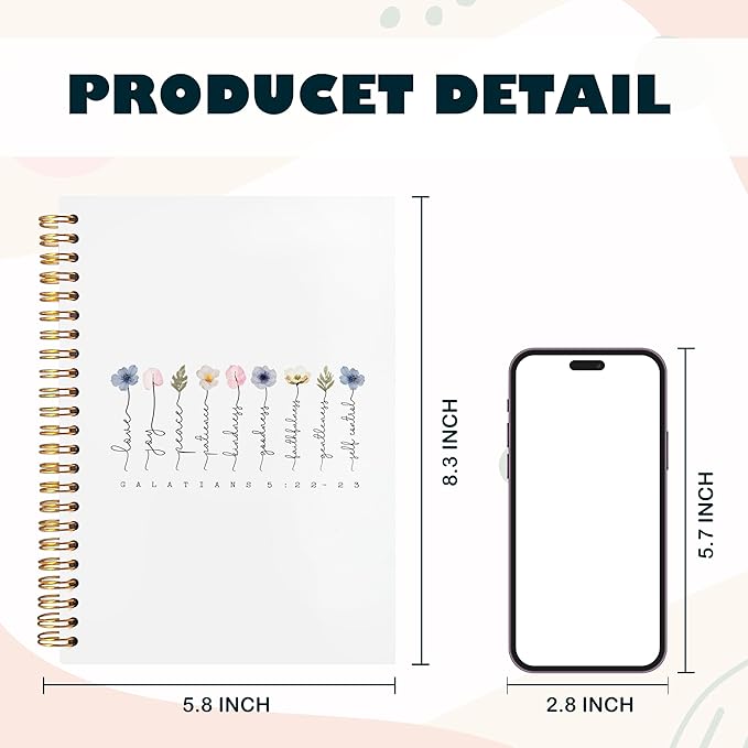 BearCake Fruit of the Spirit Boho Floral Christian Notebook Journal, Christian Gifts for Women, spiral Bible Notebooks for Note Taking, Bible Journaling Notebook, Hardcover Spiral Notebook 5.5x8.3