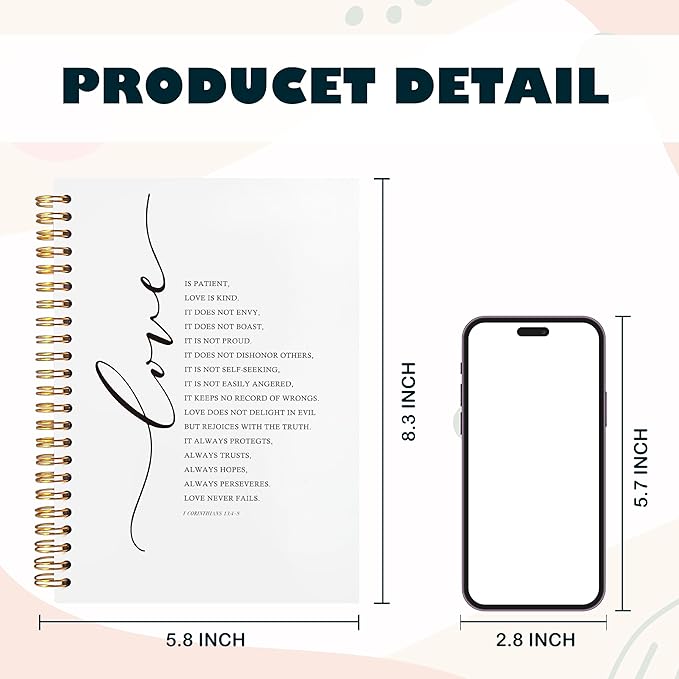 BearCake 1 Corinthians 13 Love Never Fails Christian Notebook Journal, Christian Gifts for Women Men, Bible Notebooks for Note Taking, Bible Journaling Notebook, Hardcover Spiral Notebook 5.5x8.3