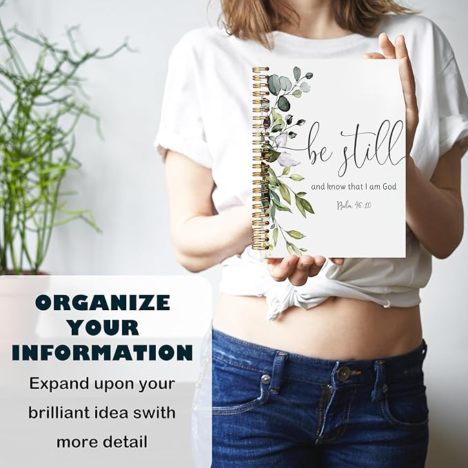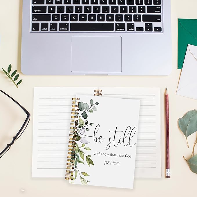 BearCake Be Still and Know That I am God Eucalyptus Christian Notebook Journal, Christian Gifts for Women, Bible Notebooks for Note Taking, Bible Journaling Notebook, Hardcover Spiral Notebook 5.5x8.3