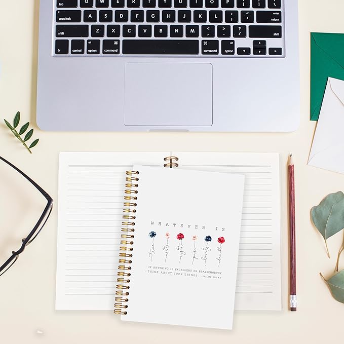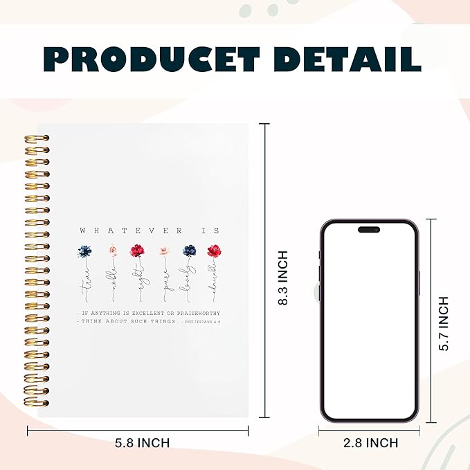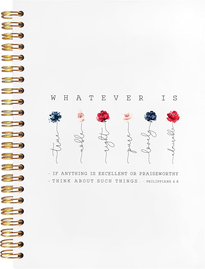 BearCake Prayer Journal for Woman,Spiral Bible with Note Taking Space,Christian Gifts for Women,Philippians 4:8 Whatever is True,Spiral bible Notebook 5.5x8.3