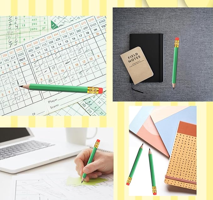 Adhere 25pcs Golf Pencils with eraser Hexagon Wooden Pencils Graphite 2B for Golf Event Scoring,Classroom,Wedding,Company Meetings,Pew, Pocket (Light Green)