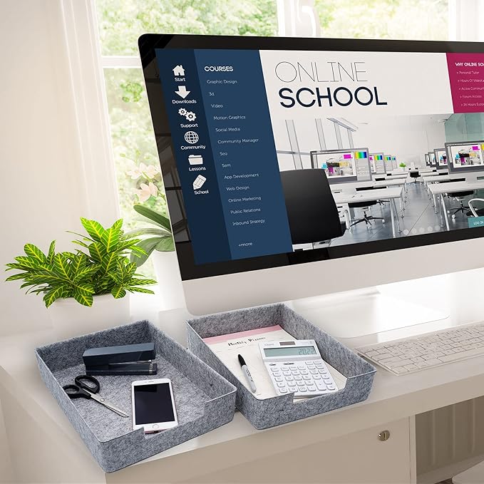 - 【Sustainable material】recycled felt with a comfortable touch. No noise like plastic, keeps stuff from flying around in the drawer. Soft to prevent scratching, flexible for saving space on your desk, in the kitchen, bathroom, or anywhere you desire, with these stylish storage and organizer bins.