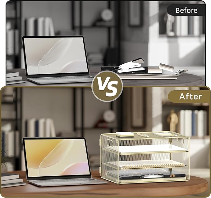 - [Sturdy & Strong] The desk paper organizer is made of lightweight strong metal mesh, more strong and stable. Our file organizer for desk is of high quality and can hold lots of files, papers, letters, mails, notebooks, etc.