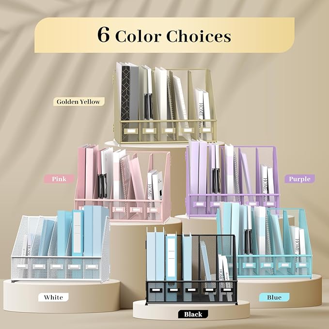 - [Space-Saving] Our mesh magazine file holder features 5 compartments, designed to consolidate your desktop items. This file organizer tames desk clutter, saves valuable space, and maintains a clean and orderly workspace.
