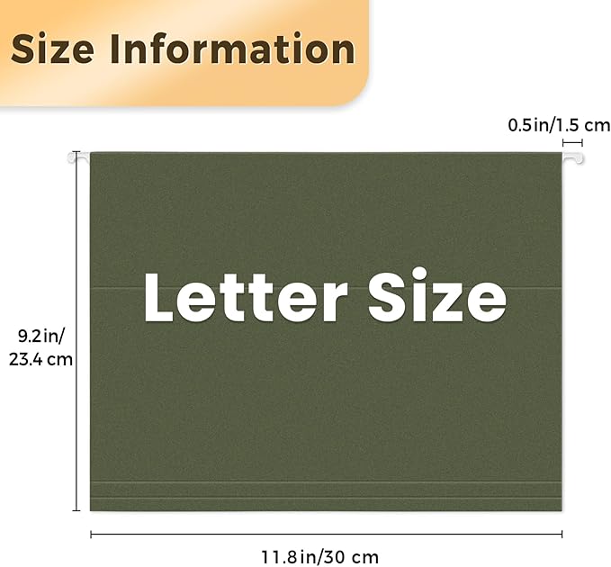 - Effective Filing: 25 pack letter size hanging file folders are designed to save desktop space, promoting neater and more efficient storage of files and documents in the office or home