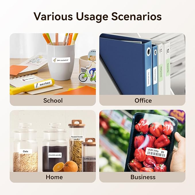 - VARIOUS USAGE SCENARIOS: D110 labeler printing width up to 15mm. Widely used in life, school, and office. Organize clothes, food, cosmetics, file labels, reminder labels, and other office supplies, classify school items, name labels, and identify personal items. It is also a perfect gift for friends, children, fathers, and mothers on Christmas, Thanksgiving, and Christmas, bringing convenience to your life and work