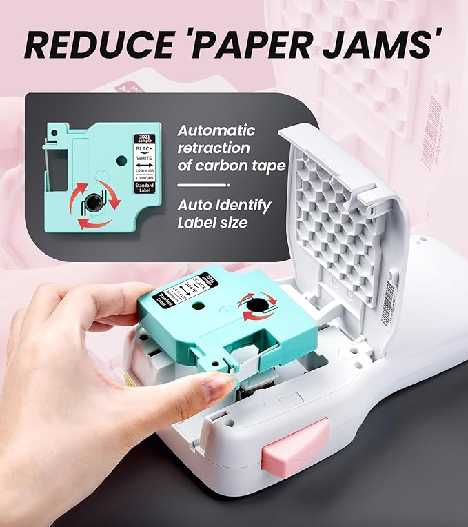 - Out-of-the-box of LM1600 labeling machine: You will receive 1 × Pink LM1600 handheld labeler, 1 × DZ label maker tape-3D21, 1 × Type-C cable, and 1 × user manual