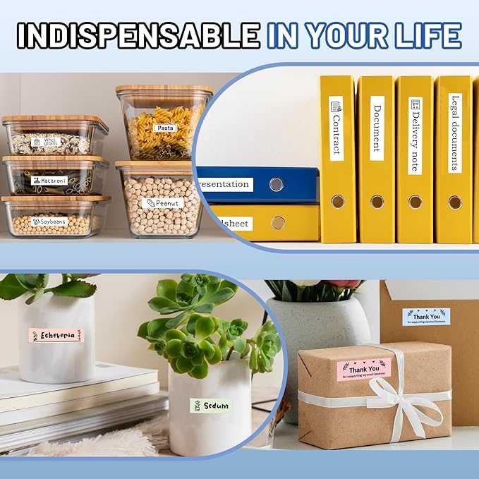 - Ideal for Organization : The EazeID D210S label maker machine with tape is perfect for labeling and organizing various spaces such as homes, offices, gardens, school supplies, shops, and labs. It can be used to label items in the kitchen, pantry, pet area, baby supplies, toys, personal belongings, postboxes, holiday decorations, and office assets. Additionally, this label maker makes an excellent gift for birthdays, Thanksgiving, and other holidays, especially for wives, mothers, daughters, girls, and ladies