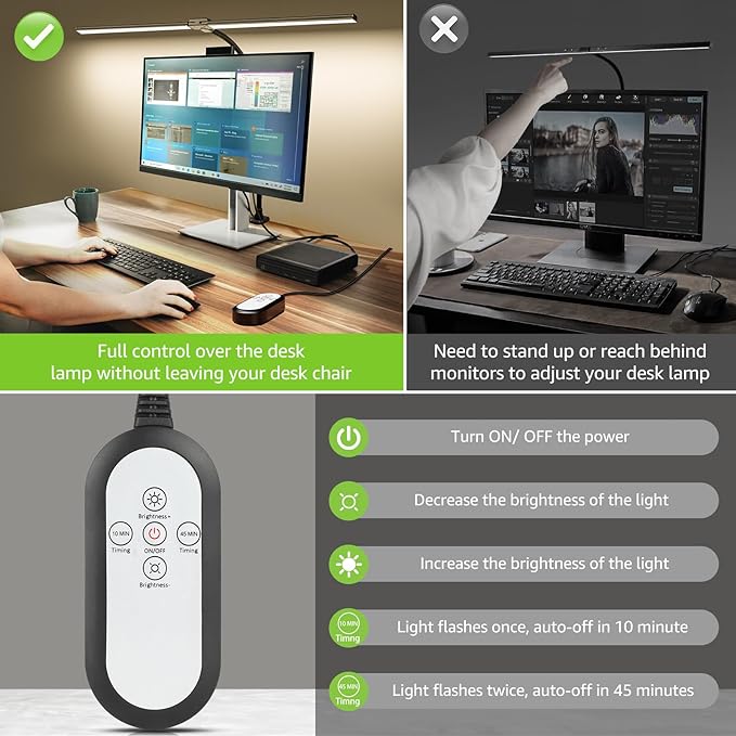 - Memory Function and Auto-off Timer: Benefit from the lamp's memory function that preserves your preferred lighting mode, making it convenient to resume your personalized settings every time you use the lamp. The built-in 10 and 45-minute automatic off-timers offer an energy-saving option, allowing you to enjoy your reading or work without worrying about leaving the light on