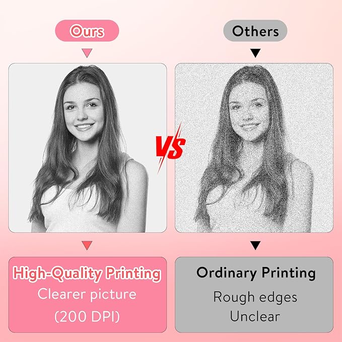 - Multipurpose & Perfect Gifts: This inkless printer for printing black and white photos, memos, labels, cute pet stickers, QR codes, etc. Information and images on the phone screen can be printed instantly. If you need a clearer print, please select the original image and darken the print. Improve efficiency by helping you organize and summarize work plans, shopping lists, and more. The ideal birthday, anniversary, Christmas gift for anyone.