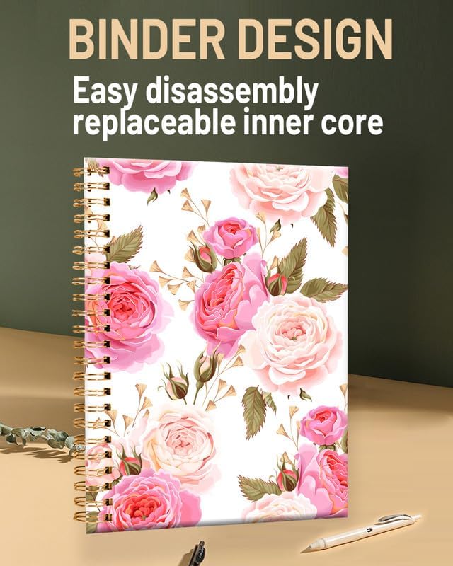 Spiral Journal Notebook for Women,A5 College Ruled Notebooks 6"x 8.4", 120 Pages (60 Sheets) Lined Journal with Premium Thick Paper,Perfect for School Office Home(Beautiful Floral Rose)