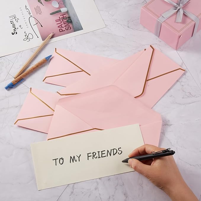 - Package: 100 pieces pink #10 Envelopes and 100 pieces gold stickers;