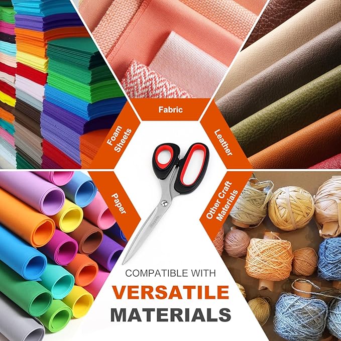 - - Precision Cutting Tools: The stainless steel blades ensure precision cutting every time, making these scissors a reliable tool for any cutting task. Heavy Duty Scissors Great for cutting burlap, paper, card stock, cardboard, wrapping paper, light line, fabric, tape, photos, coupons, and opening boxes & packaging. Surprised for sewing, tailoring, quilting, dressmaking, cutting patterns, Vinyl, Leather.